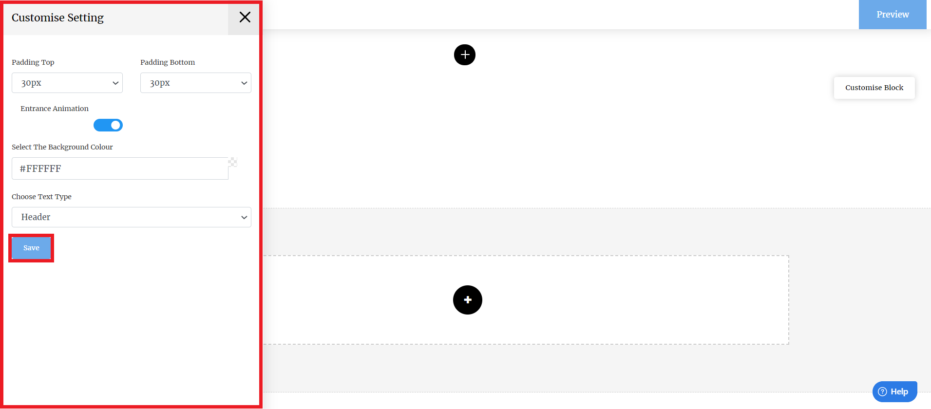 5. Finally, you can customise the settings of the component by selecting the 'Customise Block' button on the top right-hand corner of the component block.